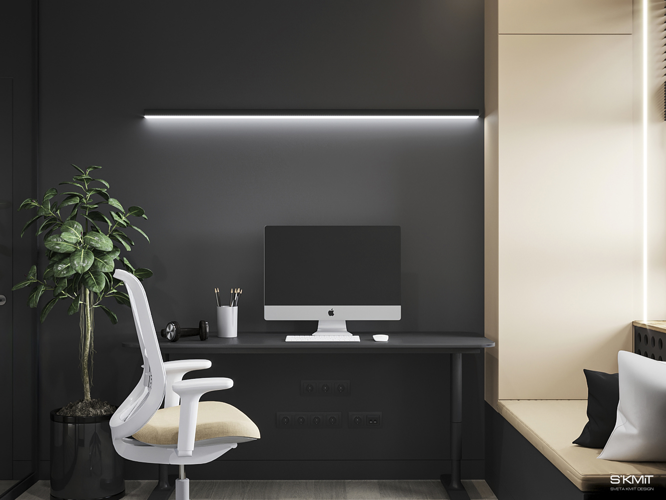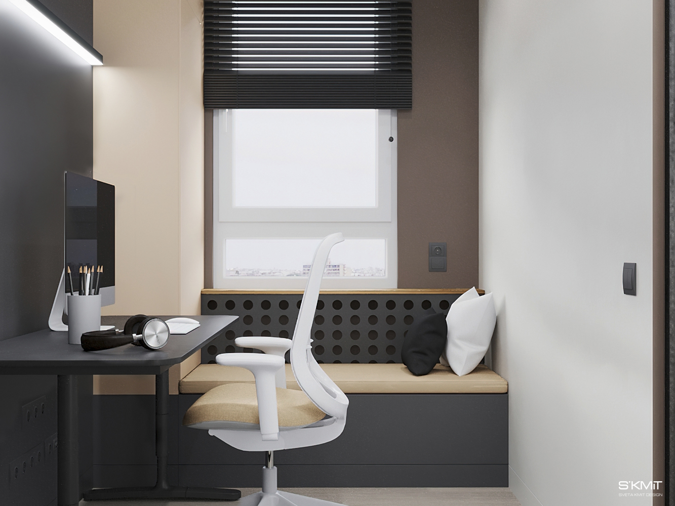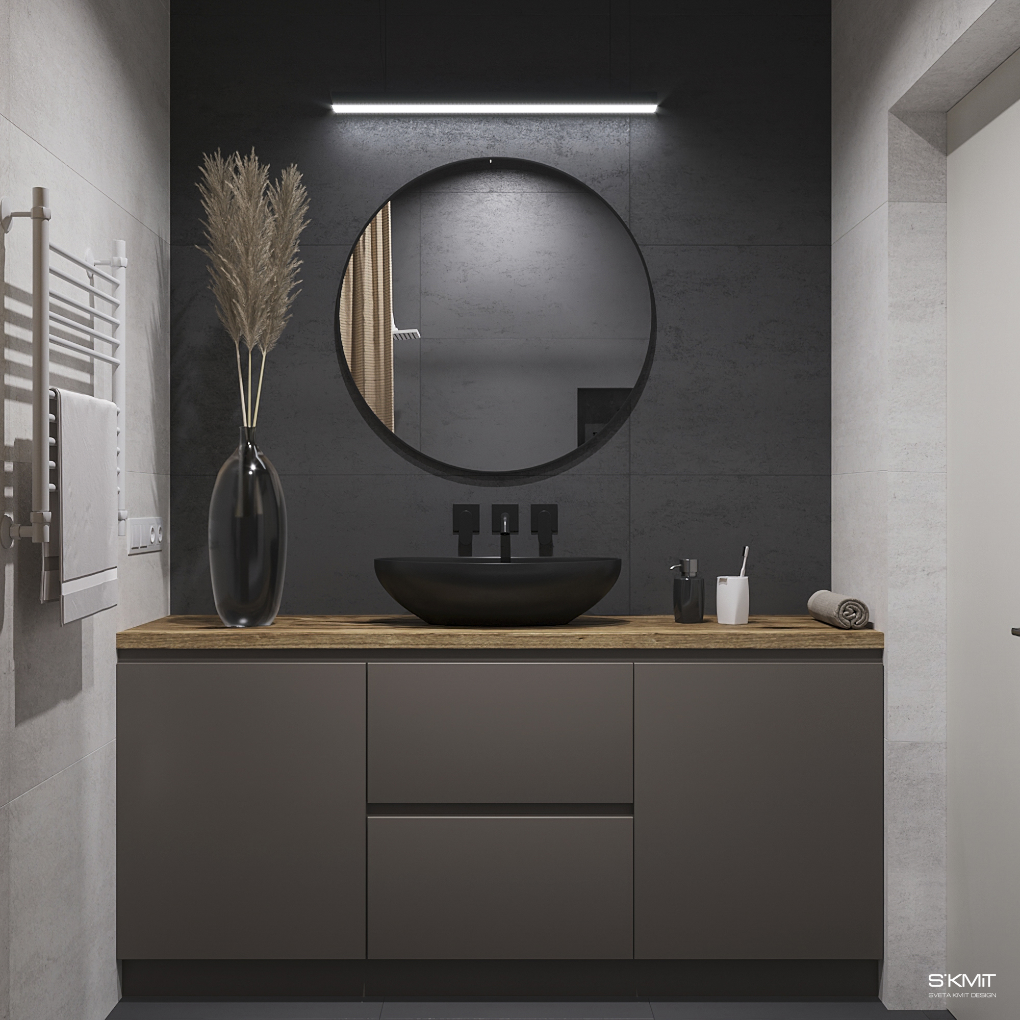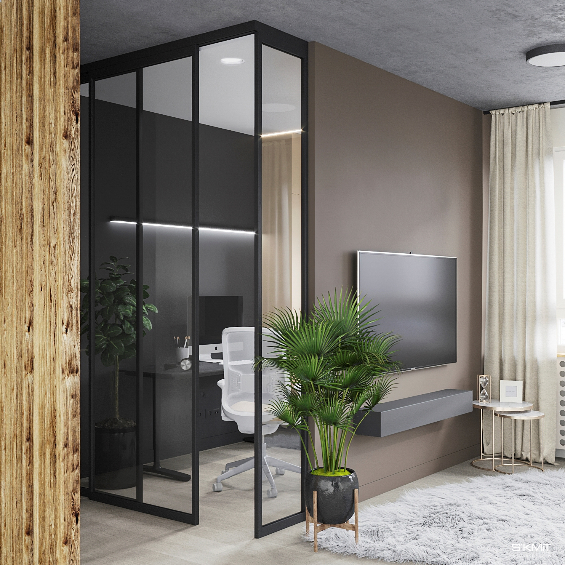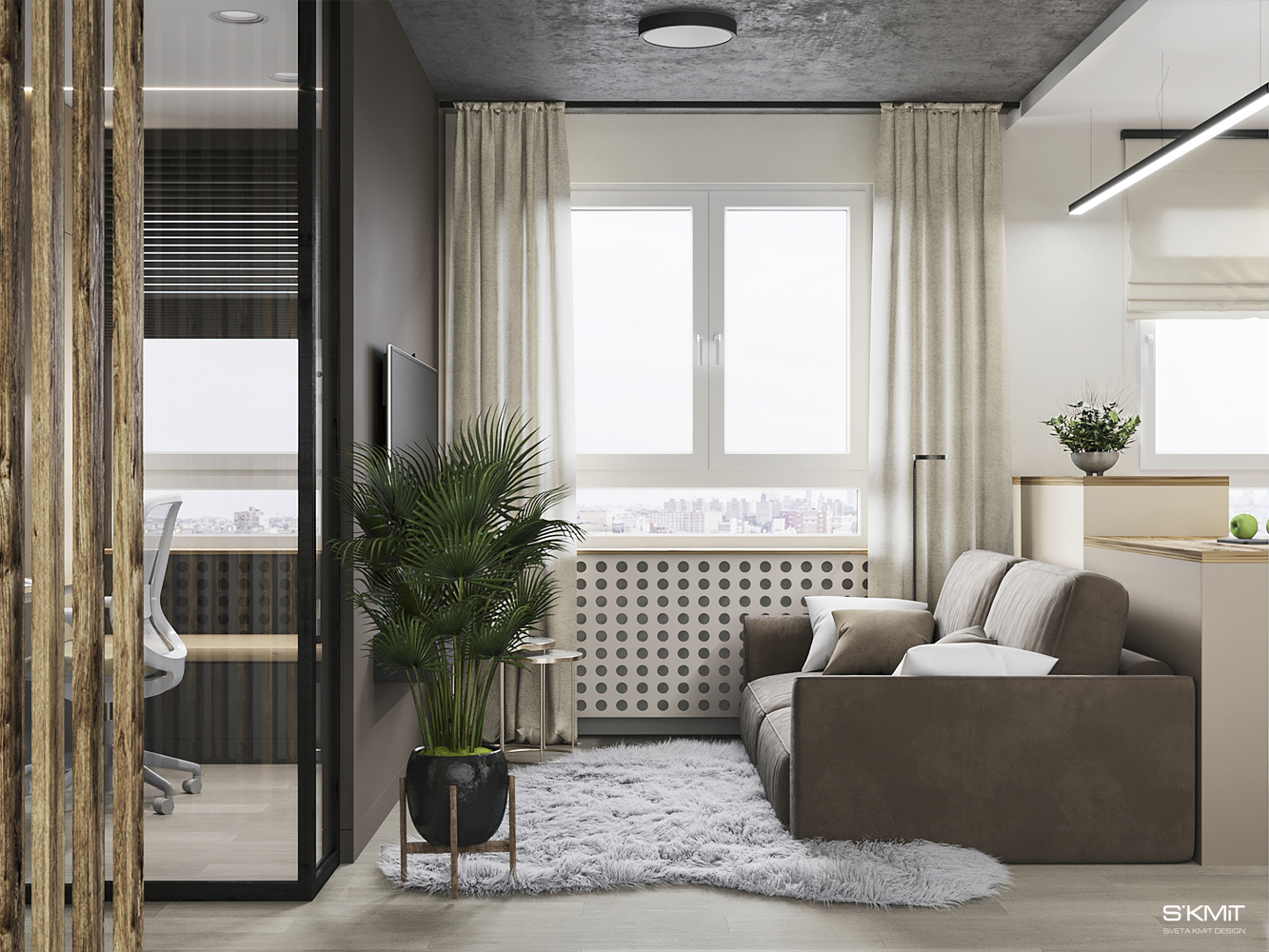 Brutal design project of an apartment of 62.5 m2 for a man in the Lavanda residential complex