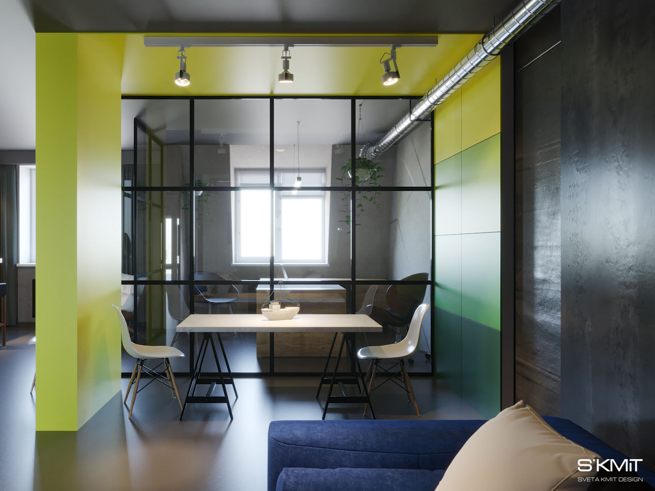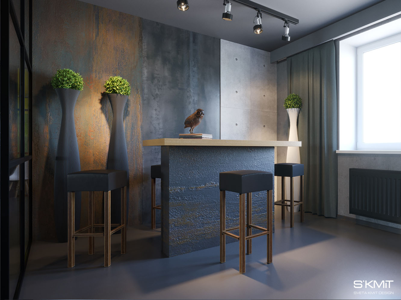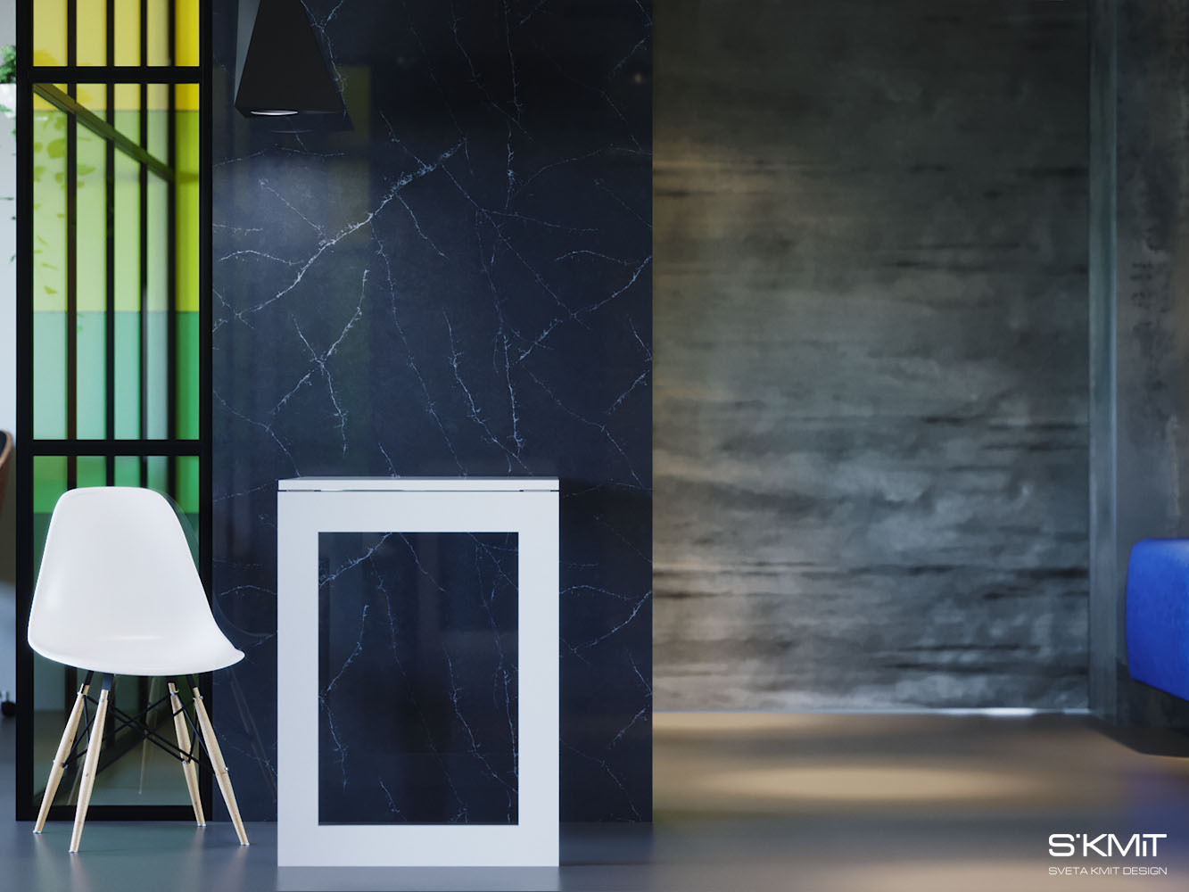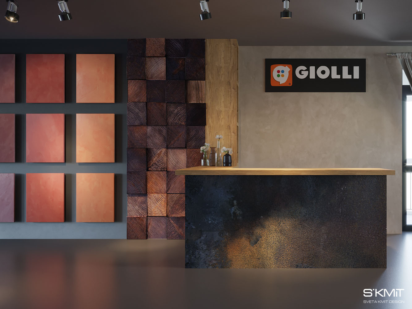 Task: to create a stylish space that reflects as much as possible the capabilities of the wall decoration company, which is a representative of the Italian manufacturer of decorative plasters Giolli in Minsk.